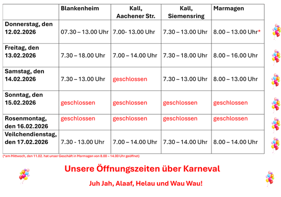 Natürlich alles in unserer bewährten, Eifeler Spitzenqualität. Wir freuen uns auf Ihren Besuch!